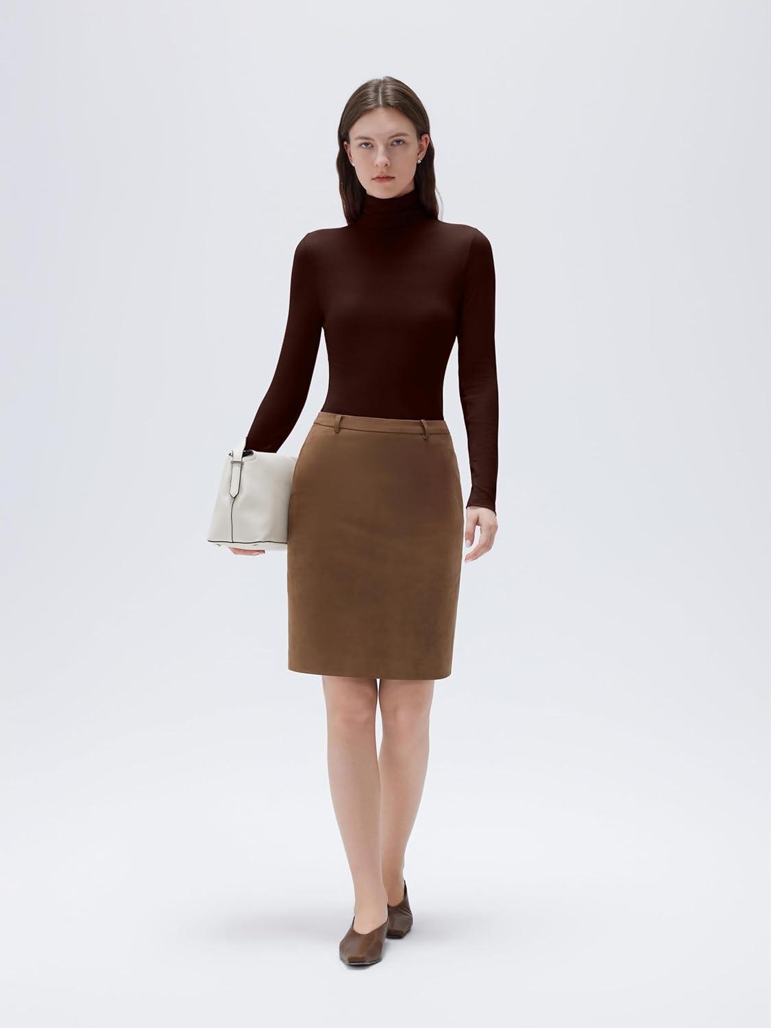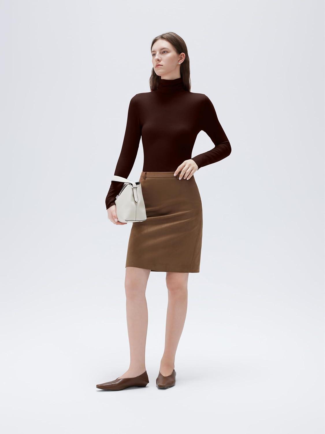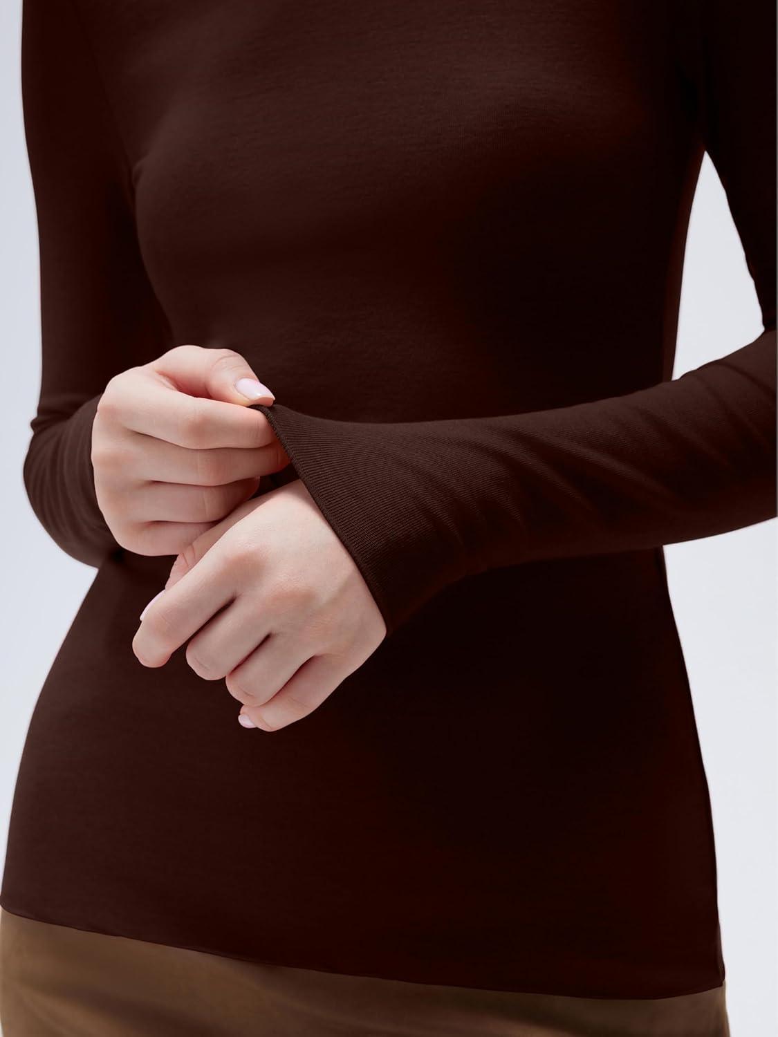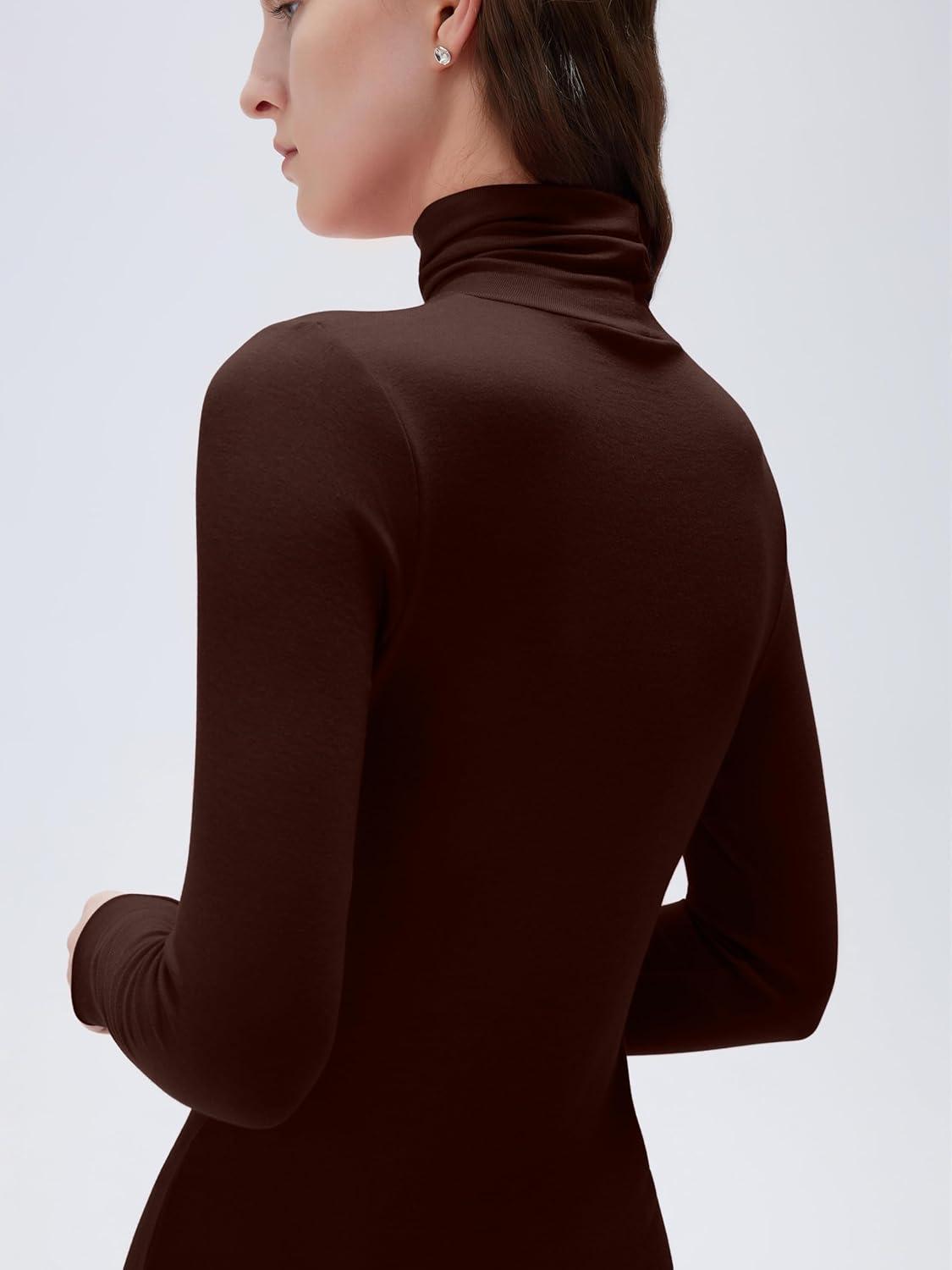 SUUKSESS Women Cashmere Turtleneck Long Sleeve Shirt Fitted Fall Basic Thermal Tops Fall Fashion(Dark Brown)