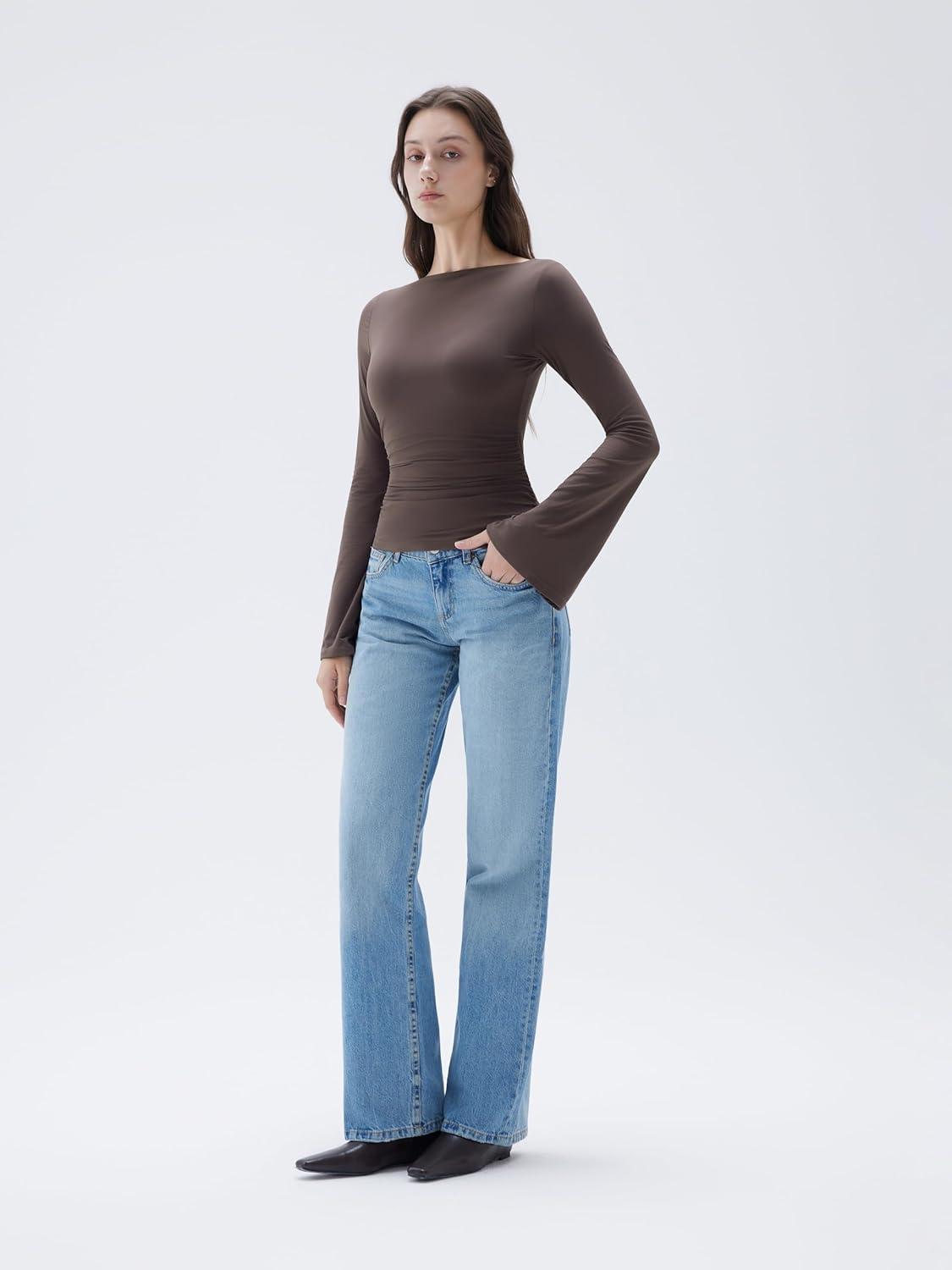 Don’t wait, get up to 50% off on SUUKSESS Women Crew Neck Bell Sleeve Tops Double Lined Going Out Fitted Basic T Shirts(Brown) during our end-of-season sale event.