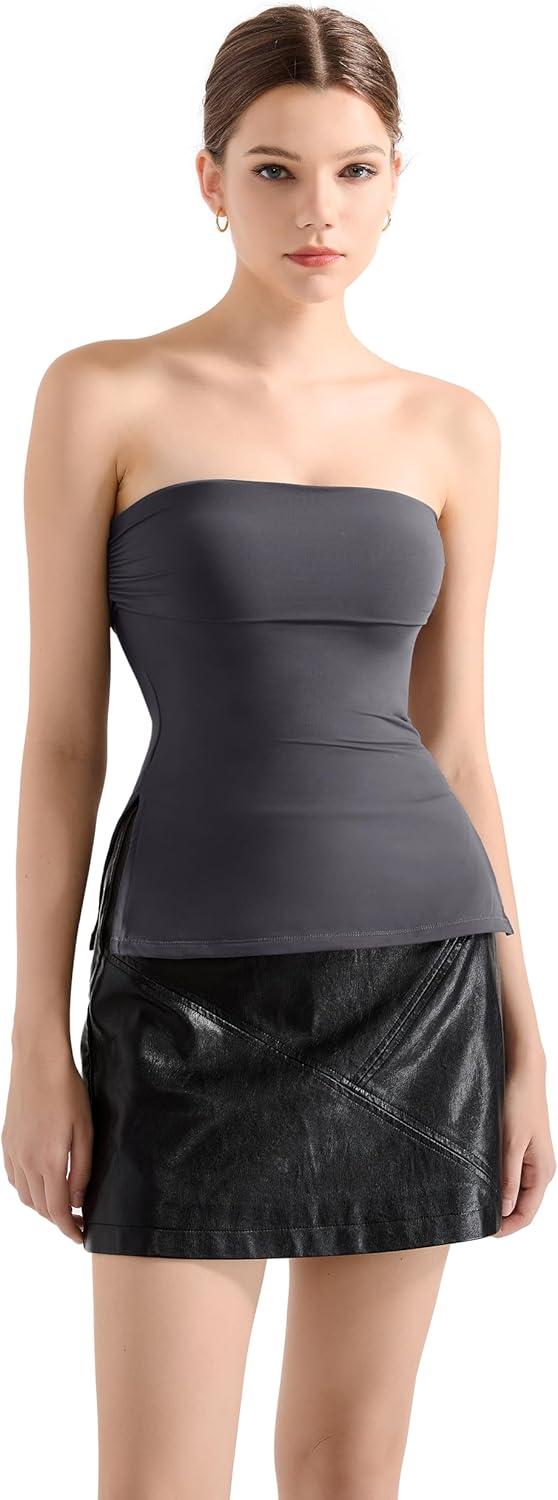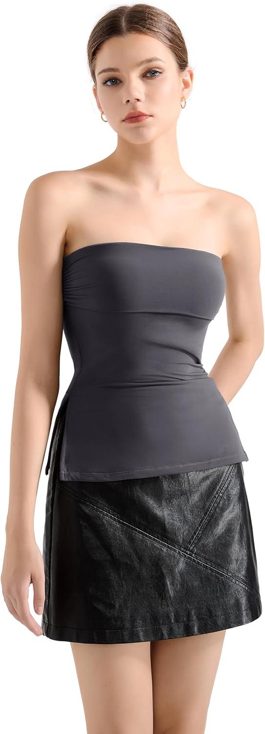 SUUKSESS Women Double Lined Going Out Trendy Tube Tops Side Split Sexy Tank Tops(03 Ash)