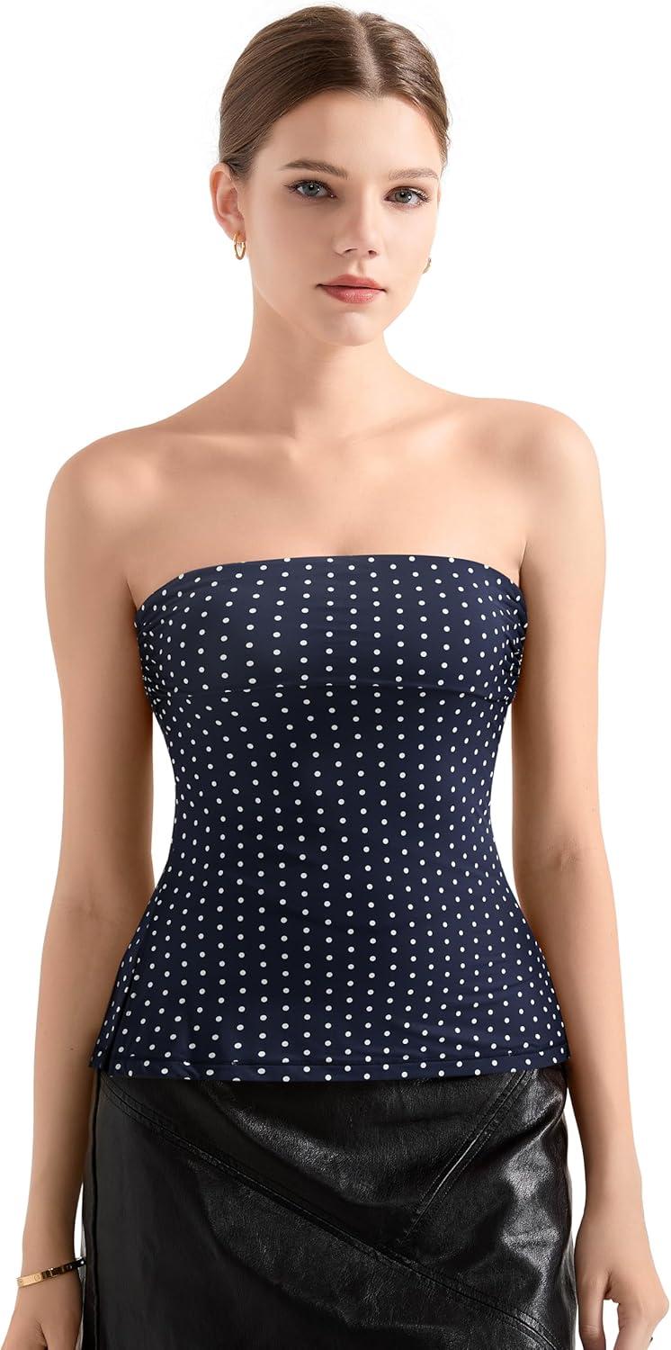 SUUKSESS Women Double Lined Going Out Trendy Tube Tops Side Split Sexy Tank Tops(10 Blue Polka Dots)