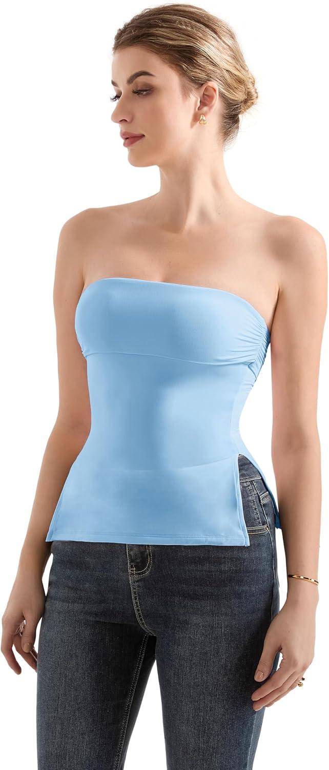 SUUKSESS Women Double Lined Going Out Trendy Tube Tops Side Split Sexy Tank Tops(20 Baby Blue)