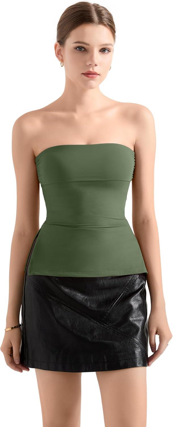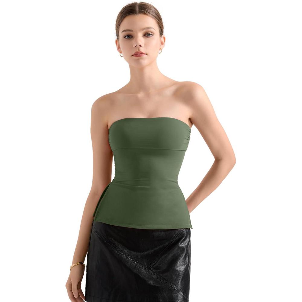 SUUKSESS Women Double Lined Going Out Trendy Tube Tops Side Split Sexy Tank Tops(21 Aqua)
