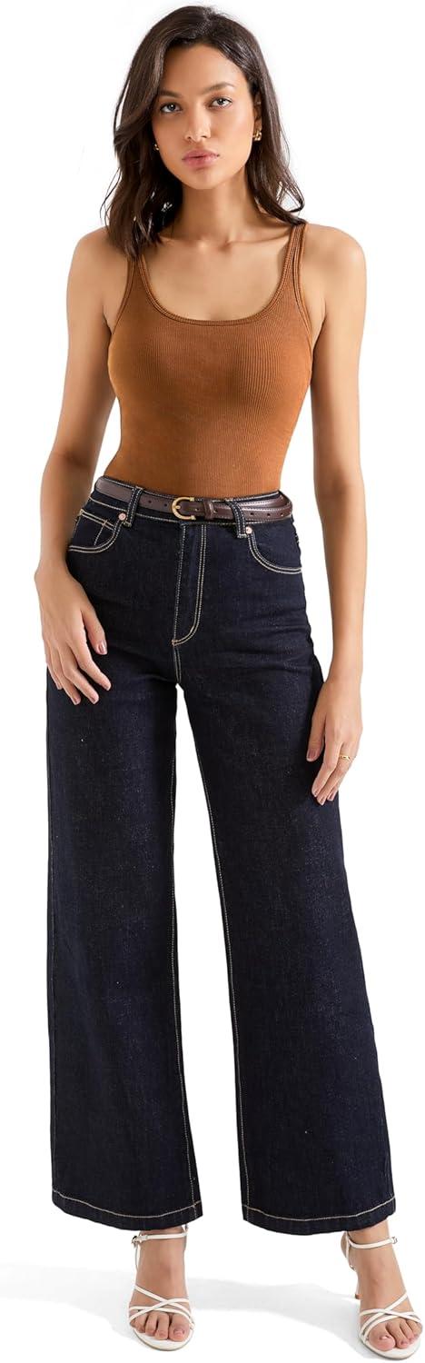 SUUKSESS Women Padded Cotton Ribbed Long Tank Tops Casual Summer Going Out Sleeveless Scoop Neck Basic Cami Tops(Blue White Stripe)
