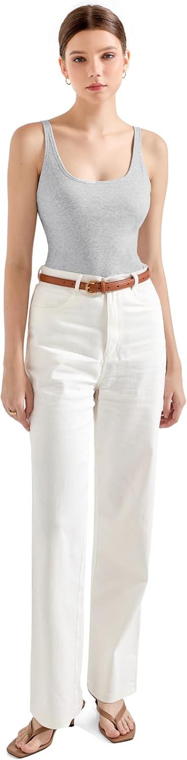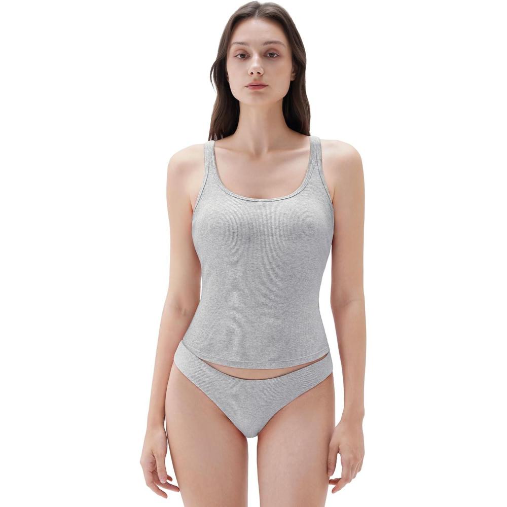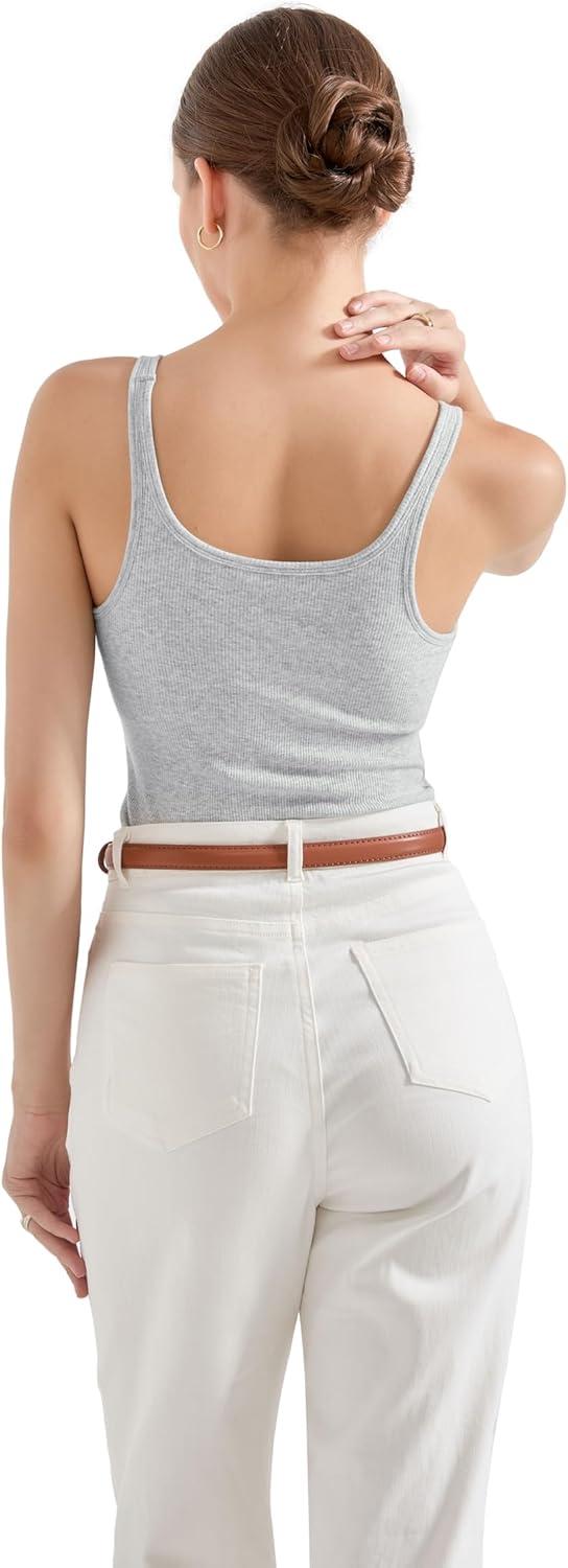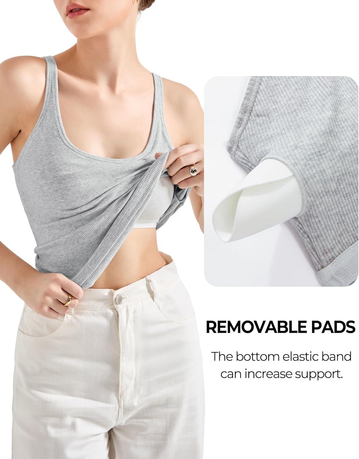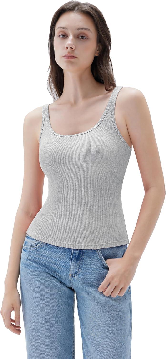 SUUKSESS Women Padded Cotton Ribbed Long Tank Tops Casual Summer Going Out Sleeveless Scoop Neck Basic Cami Tops(Light Grey)