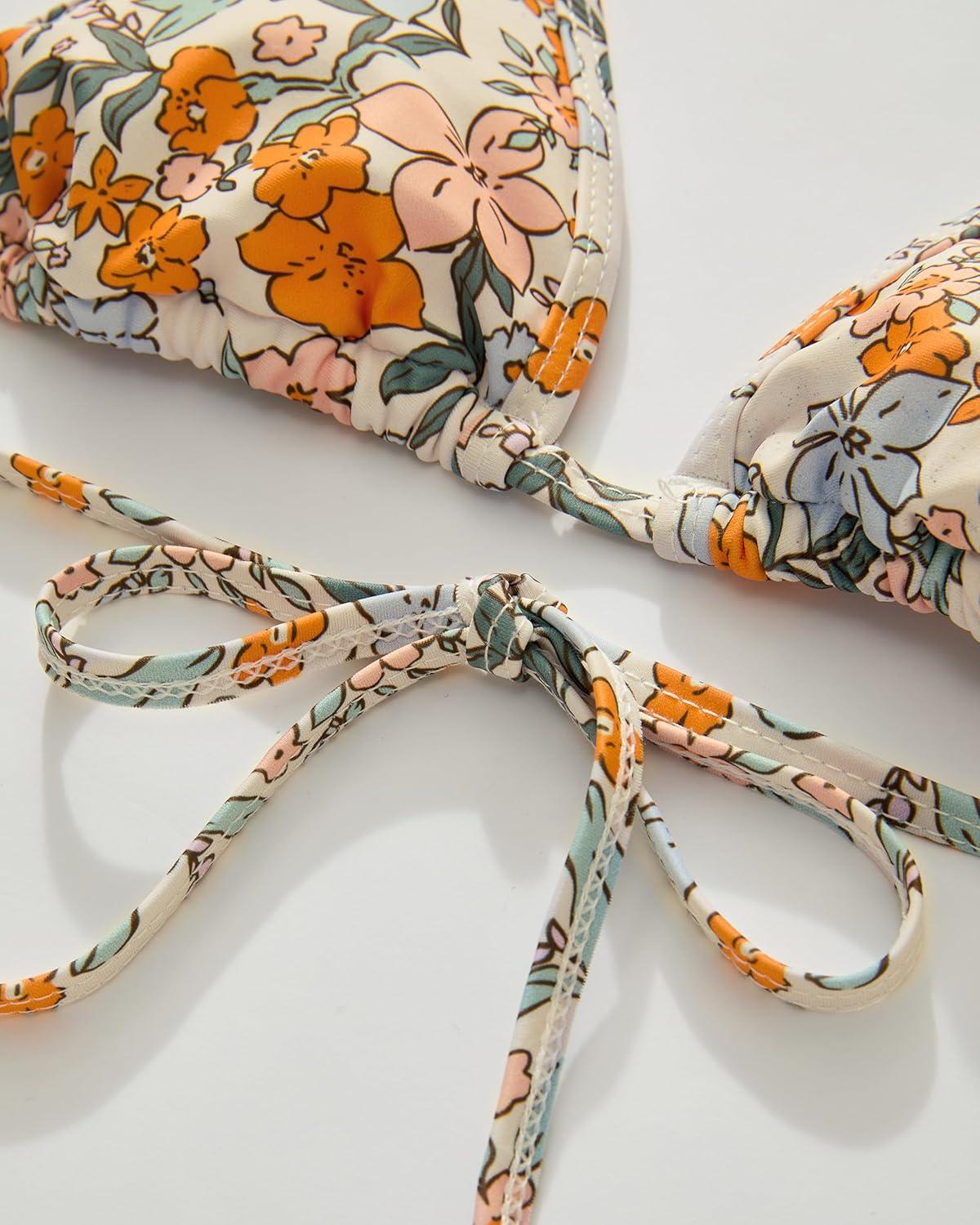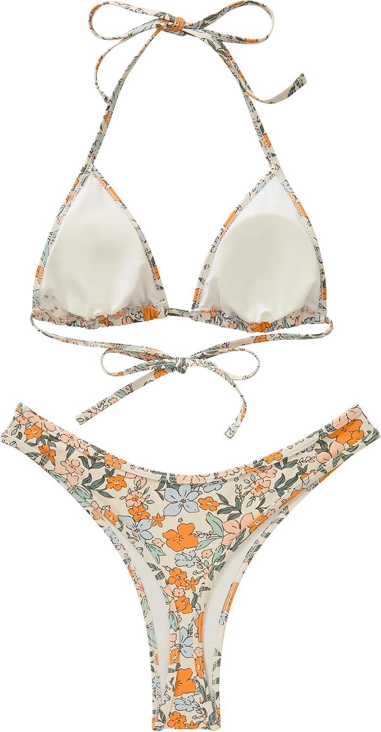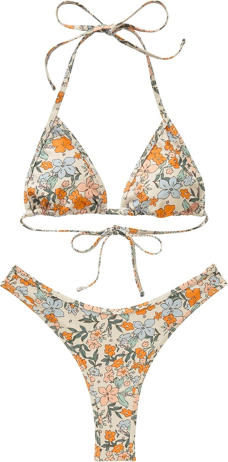 SUUKSESS Women Sexy Thong String 2 Piece Bikini Set Cheeky Halter Swimsuit(71 Yellow Floral)